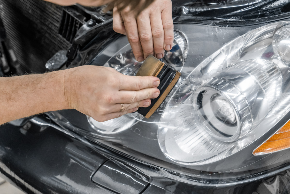 — малярный скотч. Он необходим для оклеивания фары по всему периметру и защиты кузова от возможного повреждения при выполнении работ;