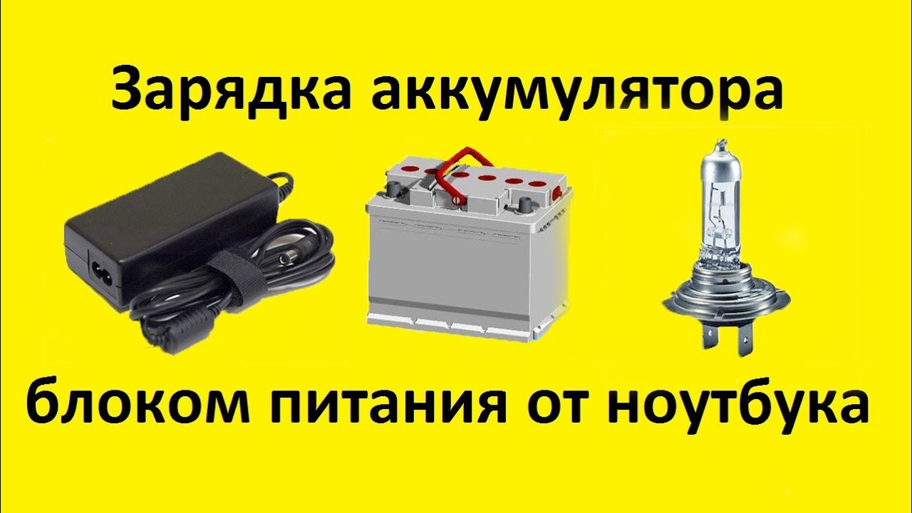 Зарядка от портативного компьютера – еще один ответ на вопрос, как зарядить аккумулятор автомобиля без зарядного устройства. Блоки питания ноутбуков, как правило, обеспечивают выходное напряжение около 20 В при токе до 4 А и снабжены защитой от КЗ. Поэтому, используя одно из них для зарядки 12-вольтового автоаккумулятора, обязательно подключайте последовательно с батареей лампу головного света мощностью около 50 Вт.