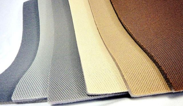 Для обтяжки автомобильных потолков чаще всего используется ткань на основе поролона, усиленная специальной сеткой. Трехслойная структура обеспечивает материалу мягкость и устойчивость к небольшим повреждениям, повышает шумоизоляцию. Сетка в составе ткани также защищает покрытие от подтеков клея, используемого при монтаже изделия. Этот фактор тоже положительно влияет на восприятие потолка и автомобильного салона в целом.