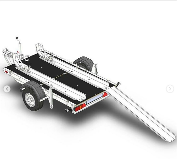 - — приспособления для перевозки одного или двух мотоциклов: трап (аппарель) для погрузки мотоцикла, направляющий ложемент — фиксирующий желоб для мотоцикла, захват переднего колеса — кронштейн для упора, такелажные ремни для крепления мотоцикла