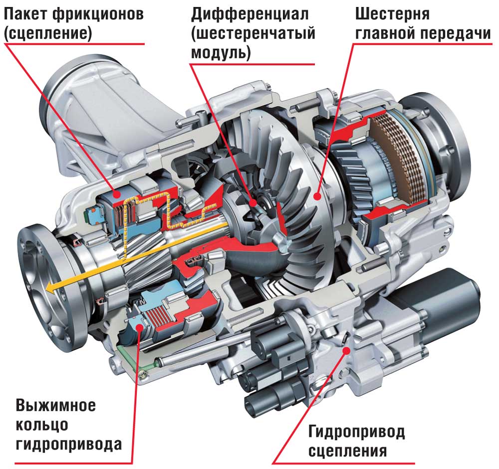 Наиболее пригодными для воздействия электроники, разумеется, получились многодисковые муфты, породив обширное семейство электронно-управляемых систем. Причем скорость их реагирования позволяет столь тонко дозировать тягу на половинках дифференциала, что автомобиль способен мгновенно приспосабливаться к меняющимся условиям движения. Для межосевого дифференциала это дает возможность перебрасывать часть момента с оси на ось для уверенного трогания или придания автомобилю большей заднеприводности в повороте. Межколесные получили ещё больше полномочий – теперь они могут даже корректировать курс на ходу.
