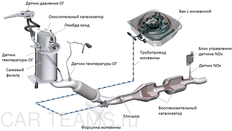 Для автомобилей с дизельным ДВС одновременно с катализатором всегда устанавливается сажевый фильтр. Эти два компонента могут совмещаться в совокупную цельную структуру.