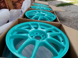 Интересную поверхность дисков можно получить с помощью резиновой краски Plasti Dip. При этом есть возможность создать глянцевое, матовое, флуоресцентное покрытие: цвета могут быть самыми разнообразными (см. фото ниже). Покраску производят в два приема: после высыхания первого слоя средство распыляется на поверхность снова. Все манипуляции занимают около часа.