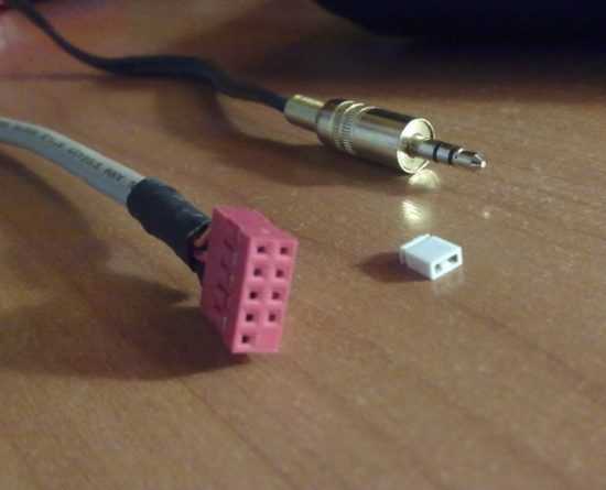 - Полученный кабель и перемычка вставляются в разъём магнитолы: