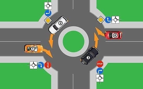 Ключ к приближению к кольцевой развязке — уступить дорогу. Всегда уступайте дорогу машинам на кольцевой развязке и уступайте пешеходам, если есть пешеходная дорожка.