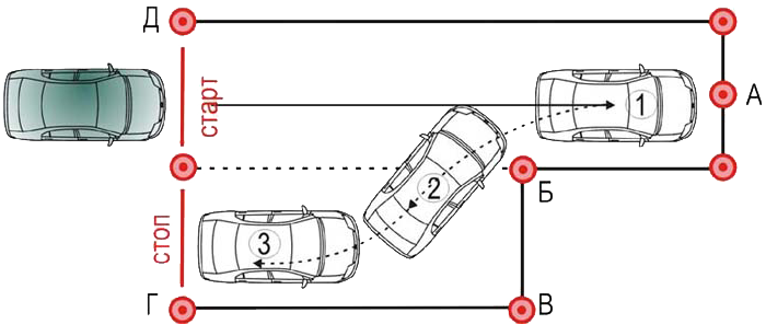 - По завершении упражнения нужно будет поставить авто возле полосы «Стоп».