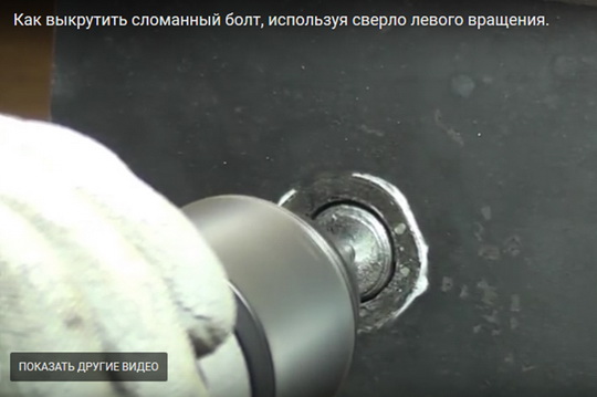 Если не получится, то можно засверлить болт и, вставив метчик с левой резьбой, начинаем его закручивать. Как правило, болт начинает откручиваться, прежде чем метчик дойдет до упора. Если нет метчика, можно пробовать отверткой с конусообразной гранью. Осторожно забивайте ее в отверстие и пробуйте открутить.