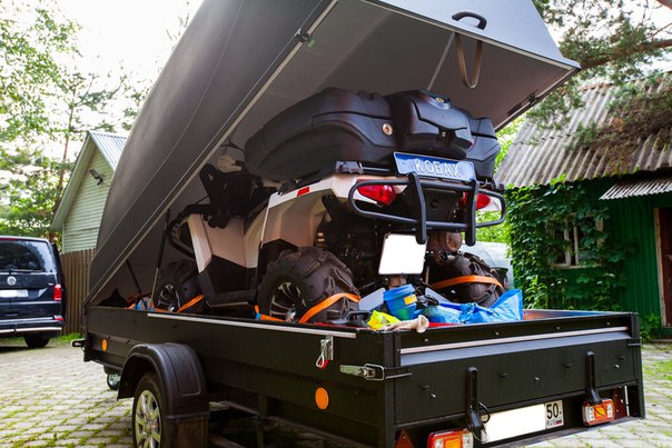 - Обратите внимание на имеющиеся в конструкции крепежи, необходимые для хорошей фиксации квадроцикла. Если таких компонентов в изделии нет, то перевозить в нем другую технику опасно.