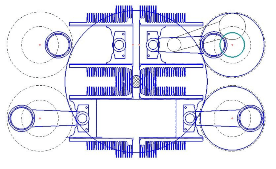 пары кривошипов, фазированных с интервалом в 90 градусов.