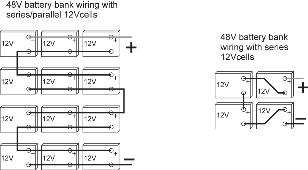 Рассмотрим каждый из возможных вариантов соединения аккумуляторов в Банк Аккумуляторов: