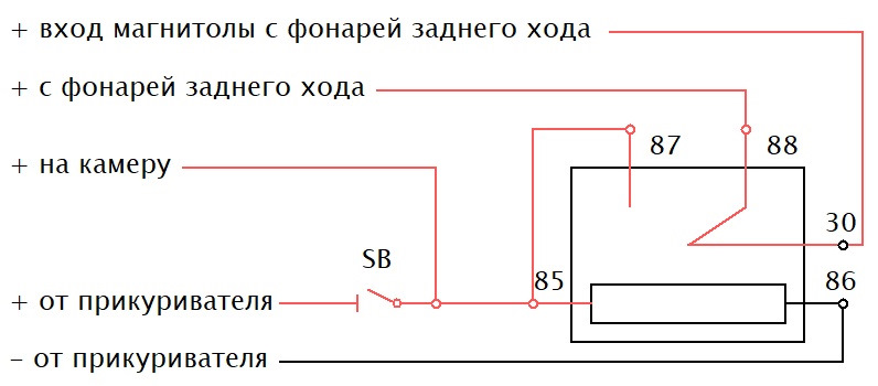Стандартной длины метра для видеокабеля, метр — для силового провода может не хватить для подключения камеры в вашей модели авто. При выключении задней камеры реле отключается и через контакт 87а плюс подается на кнопку. Придерживайтесь этих правил, и вы получите очень полезного и стабильного помощника.