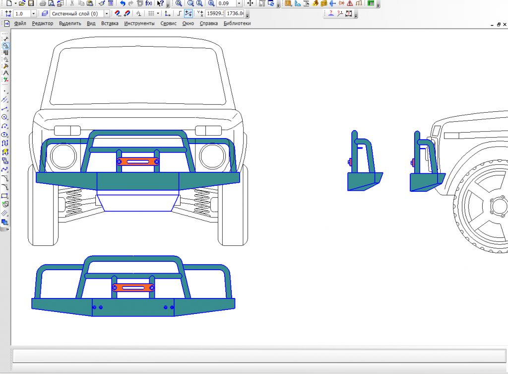 Во время изготовления силового бампера рекомендуем воспользоваться специальными графическими редакторами, в которых с легкостью можно рассчитать размеры вашего нового обвеса, углы скоса, отметить точки креплений, а также определить количество необходимого материала.