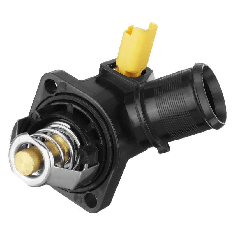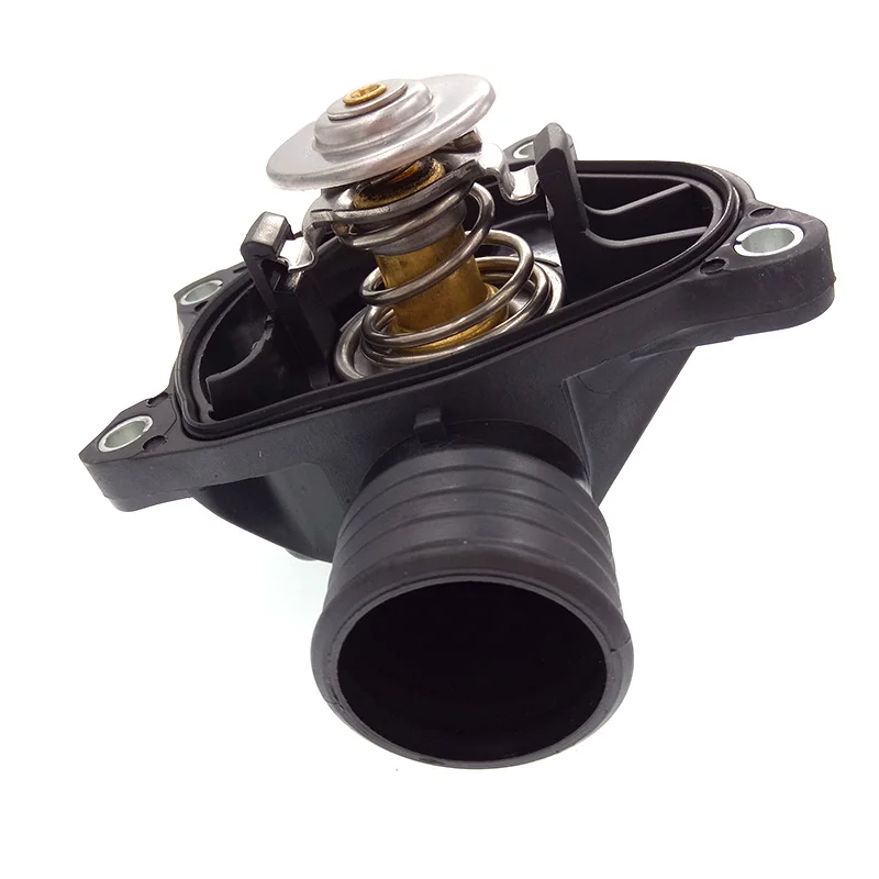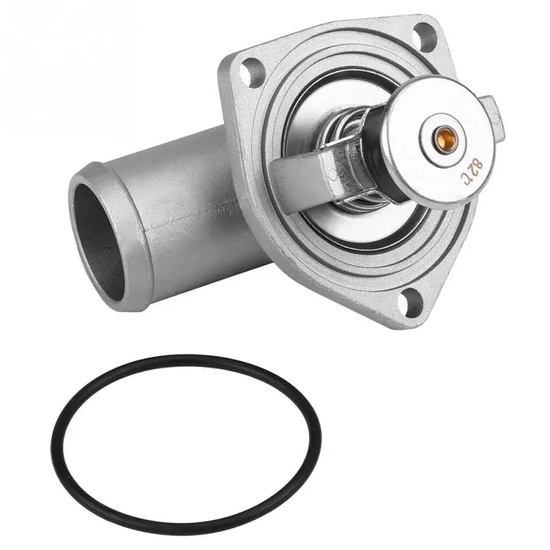Автомобильный термостат — это небольшое устройство, используемое в любом автомобильном двигателе с жидкостным охлаждением, которое находится между двигателем и радиатором, чтобы блокировать поток охлаждающей жидкости к радиатору, пока двигатель не прогреется. Сегодня термостат используется для повышения полноты сгорания, снижения расхода топлива за счет конденсации вязкости моторного масла и, следовательно, снижения потерь на трение. Кроме того, он повышает выходную мощность при полной нагрузке (из-за снижения температуры охлаждающей жидкости), а также улучшает характеристики обогрева салона и снижает выбросы загрязняющих веществ. Термостат обычно имеет диаметр около 2 дюймов для небольших автомобилей.