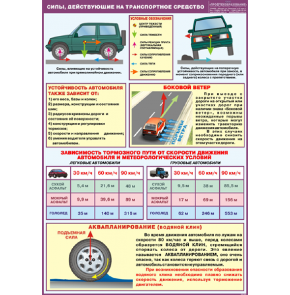 На сырой или обледенелой дороге, в снегу вследствие плохого сцепления поверхности колеса автомобиля с дорожным покрытием путь торможения возрастает в несколько раз.