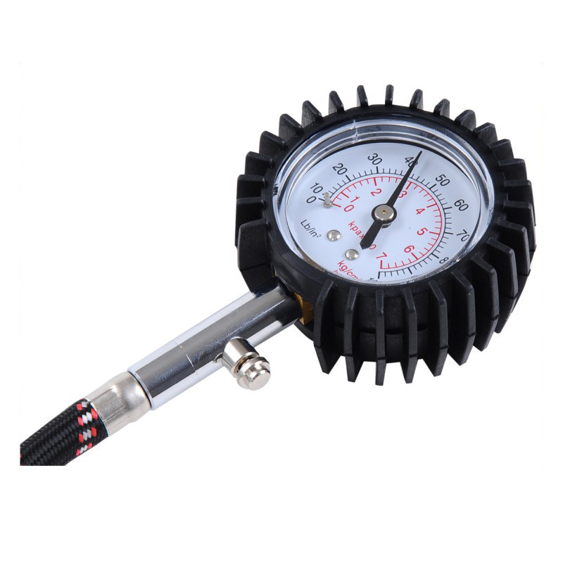 Автомобильным манометром называется прибор, который показывает плотность воздуха внутри покрышки. Единица измерения кгс/см² или Бар (Bar). Также измерительный прибор может использоваться для измерения давления в баллонах пневмоподвеске. Готовые комплекты пневмы часто комплектуются стрелочными приборами от автомобиля КамАЗ, так как у него механический стрелочный прибор, показывающий давление до 10 атмосфер, и отличающийся точностью показателей. Принцип работы манометра для шин и пневмоподвески одинаковый, так как работают они по единому принципу.