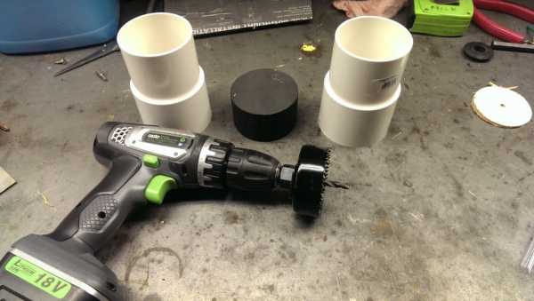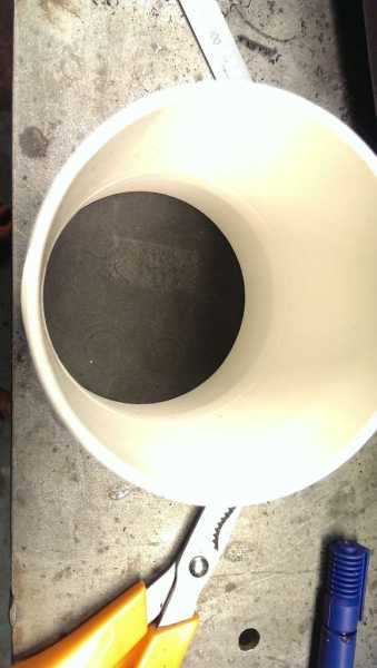 Шаг 3. С пластиковых разъемов для розетки кусачками срежьте боковые бортики. Они в данной работе не понадобятся. С обратной стороны трубы вставьте оставшийся пластиковый круг. Скрепите эти детали при помощи суперклея. Сдавите их вместе, пока клей не схватится. Выступающие за трубу части получившегося основания обрежьте. Края срезов обязательно зашкурьте.